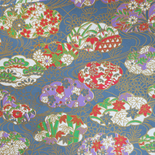Pack of 20 Sheets 14x14cm Yuzen Washi Origami Paper HZ-523 - blue Flower Cloud