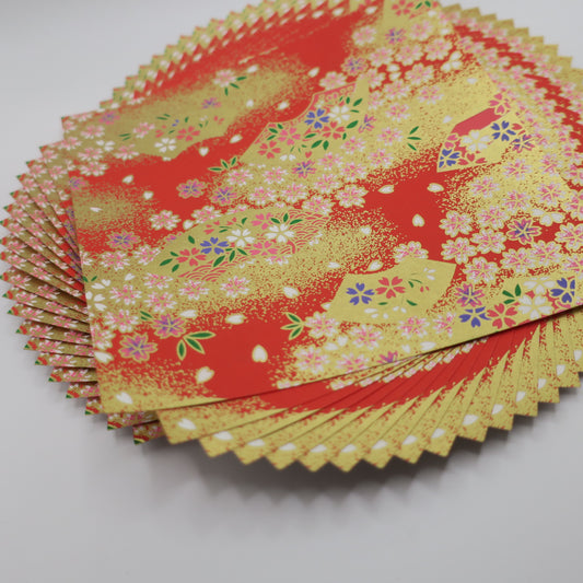 Pack of 20 Sheets 14x14cm Yuzen Washi Origami Paper HZ-536 - Red Sakura Flower Sea