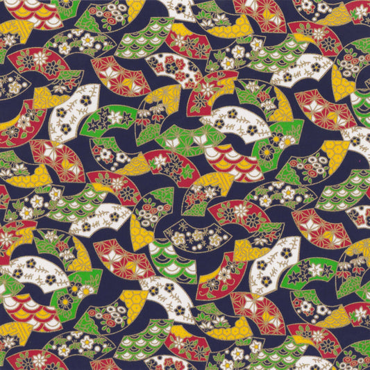 Pack of 20 Sheets 14x14cm Yuzen Washi Origami Paper HZ-328 - Floral Fans Navy