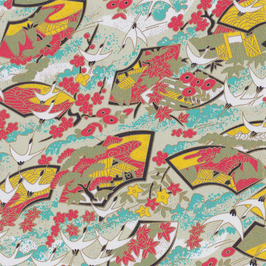 Pack of 20 Sheets 14x14cm Yuzen Washi Origami Paper HZ-367 - Cranes & Floral Fans
