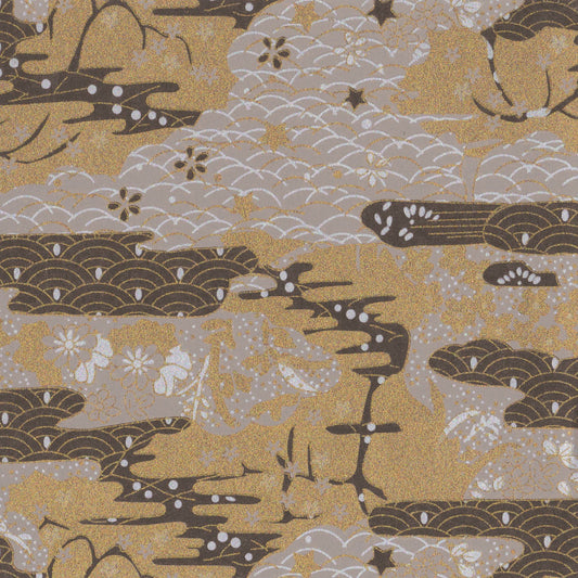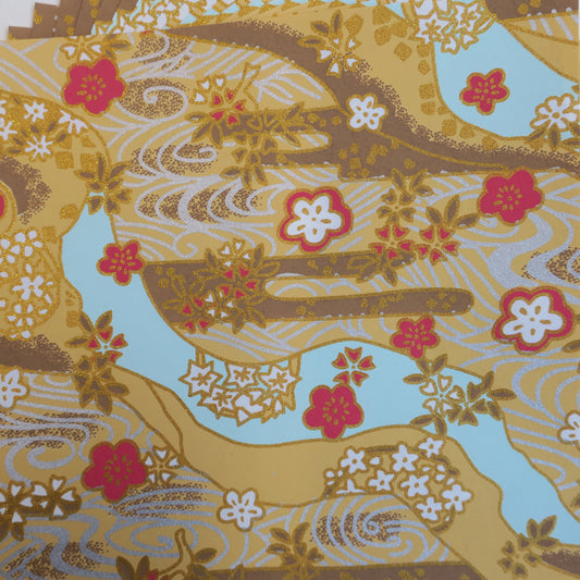 Pack of 20 Sheets 14x14cm Yuzen Washi Origami Paper HZ-041 - Gold Sea Waves Garden