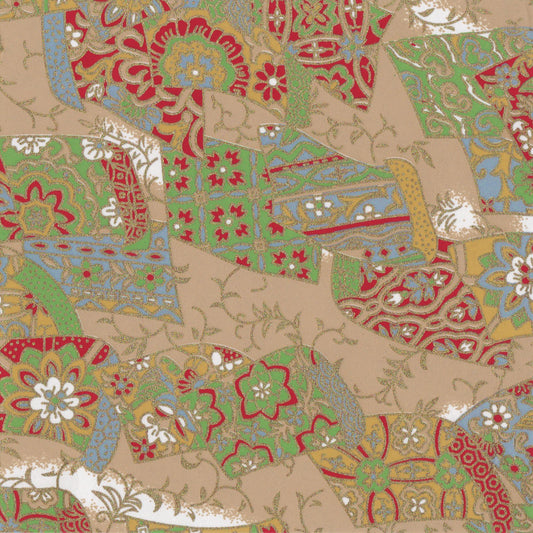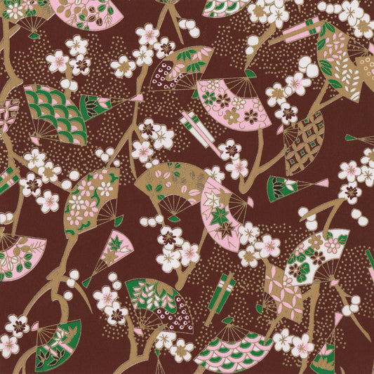Pack of 20 Sheets 14x14cm Yuzen Washi Origami Paper HZ-398 - Floral Fans Brown