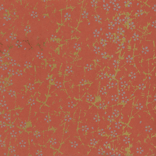 Pack of 20 Sheets 14x14cm Yuzen Washi Origami Paper HZ-184 - Small Silver Cherry Blossom Fire Orange