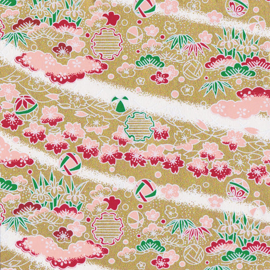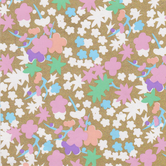 Pack of 20 Sheets 14x14cm Yuzen Washi Origami Paper HZ-062 - Pastel Flowers Gold