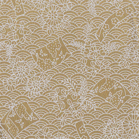 Pack of 20 Sheets 14x14cm Yuzen Washi Origami Paper HZ-041 - Gold Sea Waves Garden