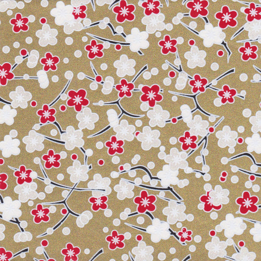 Pack of 20 Sheets 14x14cm Yuzen Washi Origami Paper HZ-413 - Red White Plum Flowers Gold