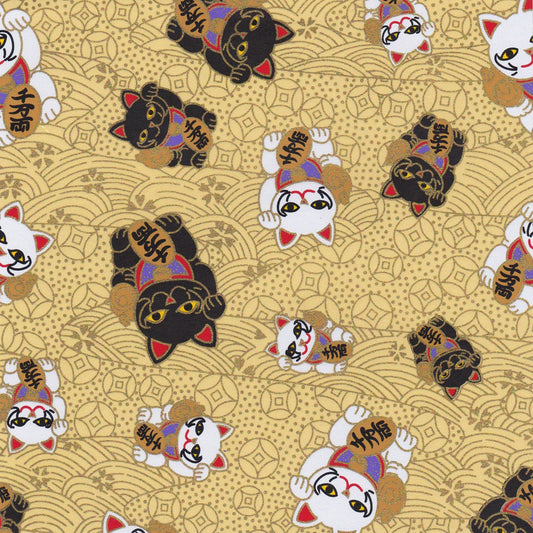 Pack of 20 Sheets 14x14cm Yuzen Washi Origami Paper HZ-429 - Fortune Cats Gold