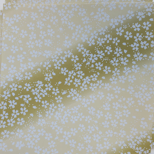 Pack of 20 Sheets 14x14cm Yuzen Washi Origami Paper HZ-092 - Small Gold Cherry Blossom