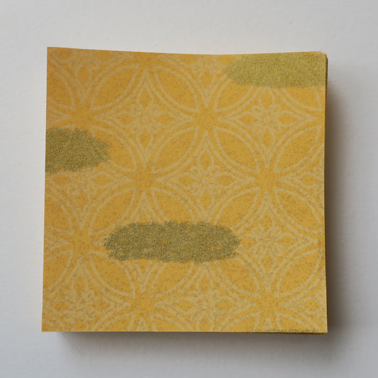 Pack of 100 Sheets 7x7cm Yuzen Washi Origami Paper HZ-187 - Small Cherry Blossom Yellow With Gold Freckles