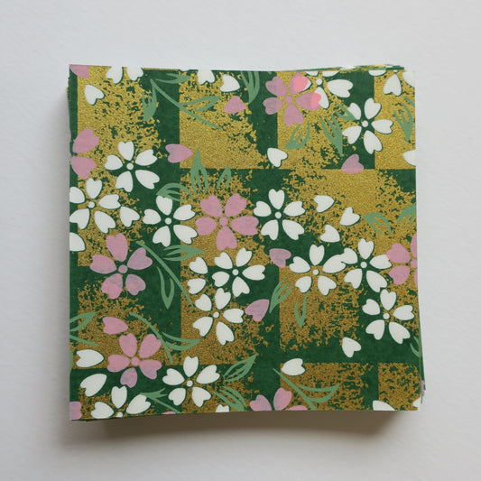 Pack of 100 Sheets 7x7cm Yuzen Washi Origami Paper HZ-470 - Cherry Blossom Green Shade