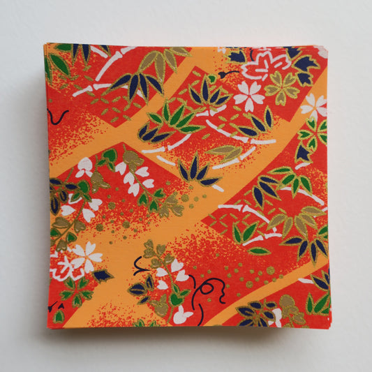 Pack of 100 Sheets 7x7cm Yuzen Washi Origami Paper HZ-342 - Cherry Blossom Orange Shade
