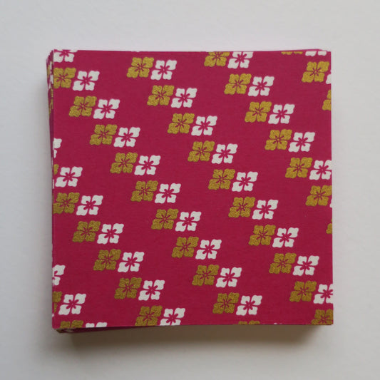 Pack of 100 Sheets 7x7cm Yuzen Washi Origami Paper HZ-486 - Old Rose Diamond Flower