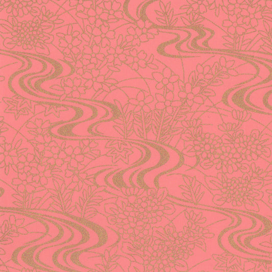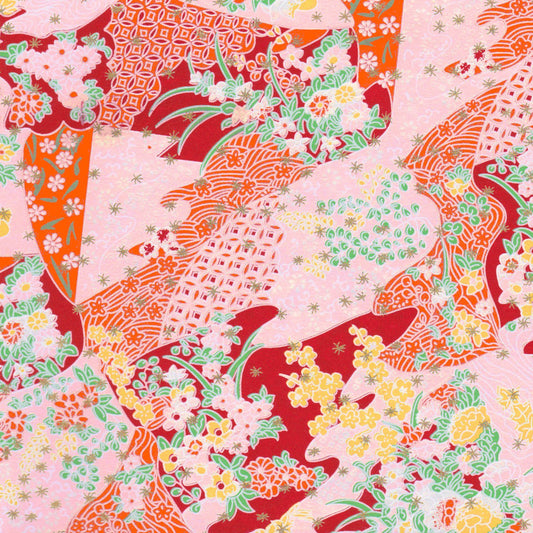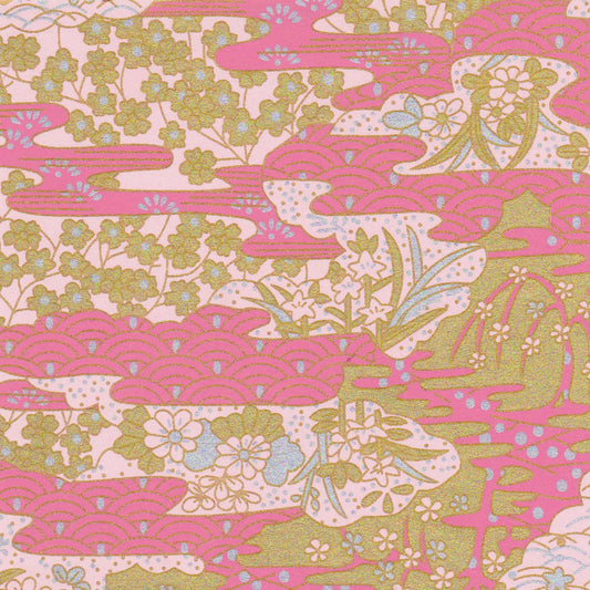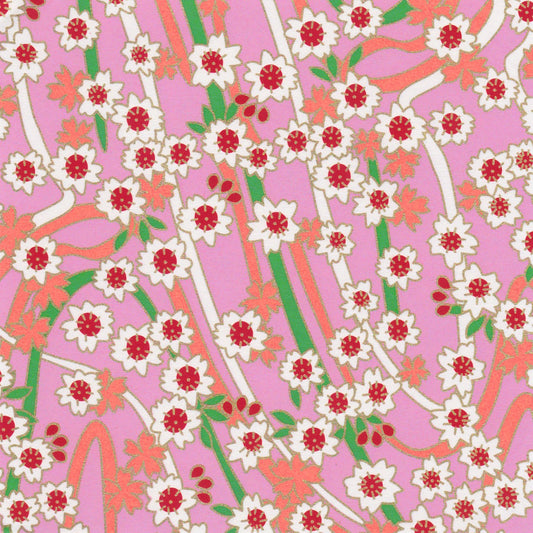 Pack of 20 Sheets 14x14cm Yuzen Washi Origami Paper HZ-085 - Pink Flowing Water Garden