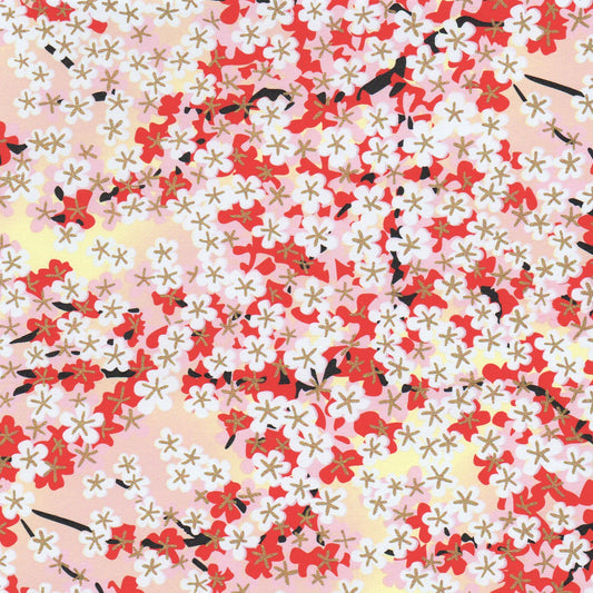 Pack of 20 Sheets 14x14cm Yuzen Washi Origami Paper HZ-354 - Pink, Red & White Cherry Blossoms