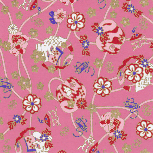 Pack of 20 Sheets 14x14cm Yuzen Washi Origami Paper HZ-177 - Old Toys Dark Pink