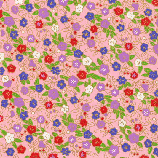 Pack of 20 Sheets 14x14cm Yuzen Washi Origami Paper HZ-358 - Pink Flower Field