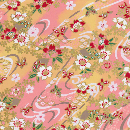 Pack of 20 Sheets 14x14cm Yuzen Washi Origami Paper HZ-436 - Cherry Blossom & Butterflies