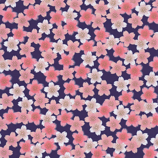 Pack of 20 Sheets 14x14cm Yuzen Washi Origami Paper HZ-505 - Pink Shades Cherry Blossom Navy
