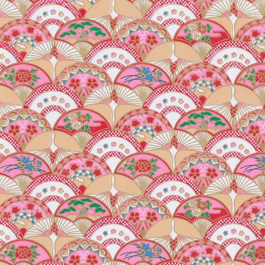 Pack of 20 Sheets 14x14cm Yuzen Washi Origami Paper HZ-032 - Gorgeous Floral Fans & Crane Circle