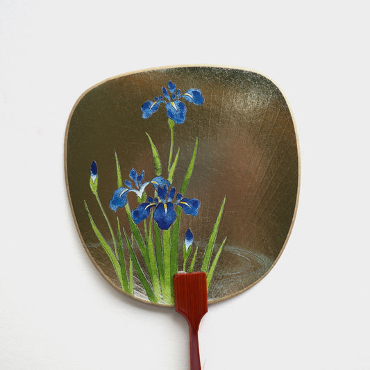 Uchiwa Fan Greeting Card - Blue Blooming Irises