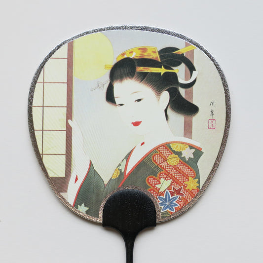 Small Uchiwa Fan Greeting Card - Woman by the window