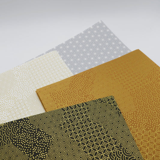 50 Sheets White & Gold Themed Colours Yuzen Washi Origami Paper Mixed Patterns 14x14cm