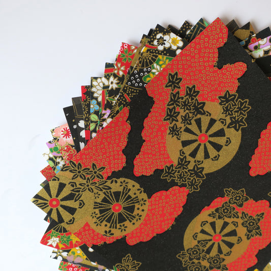 20 Sheets Black Themed Colours Yuzen Washi Origami Paper Mixed Patterns 14x14cm