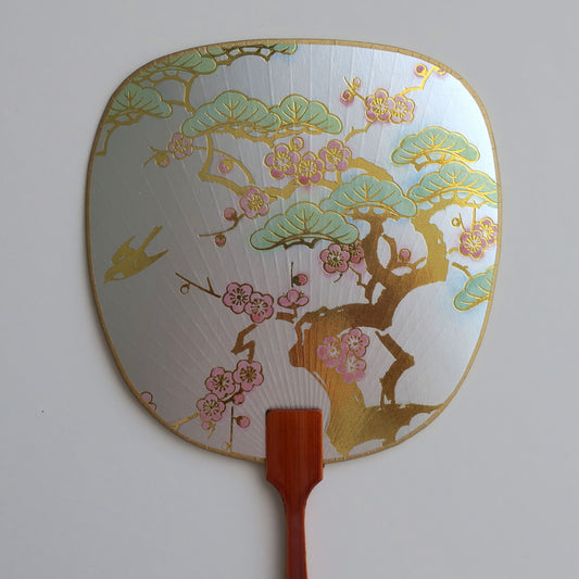 Tarjeta de felicitación Uchiwa Fan - Pino con flores de ciruelo