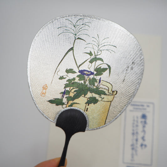 Tarjeta de felicitación pequeña de abanico Uchiwa -Flores en jarrón
