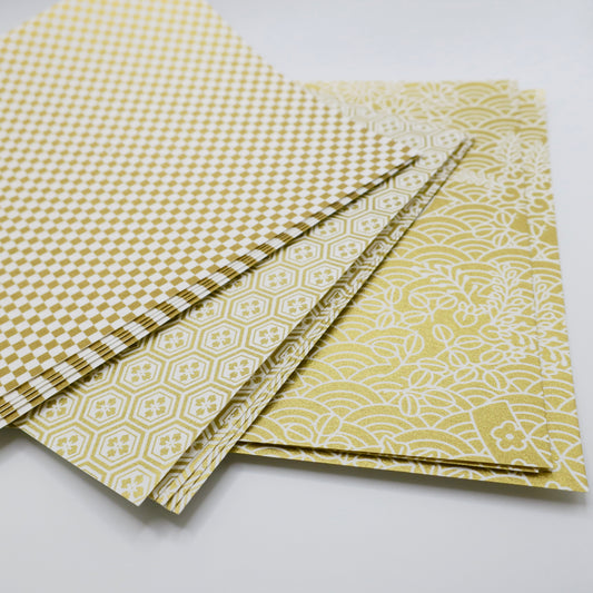 20 hojas de papel para origami Yuzen Washi de colores temáticos blanco y dorado, 14x14cm