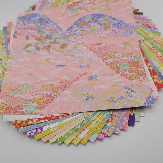 50 hojas de papel para origami Yuzen Washi de 14x14 cm - Patrones mixtos
