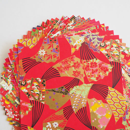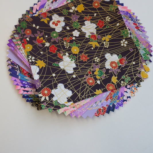 Yuzen Washi, también conocido como papel japonés Chiyogami, es un tipo de papel decorativo tradicional japonés. Sus hermosos y vibrantes patrones están inspirados en la naturaleza a lo largo de las estaciones y tienen sus raíces en los patrones de kimono. Su capacidad de ser fino pero duradero se consigue mezclando fibras largas, lo que lo hace más duradero manteniendo la flexibilidad y un tacto suave. A menudo se utiliza como material de artesanía, ideal para modelos de origami sencillos, partes del interior del hogar como módulos de origami , fabricación de cajas , collages, invitaciones a fiestas de bodas y una variedad de otras formas de arte en todo el mundo.