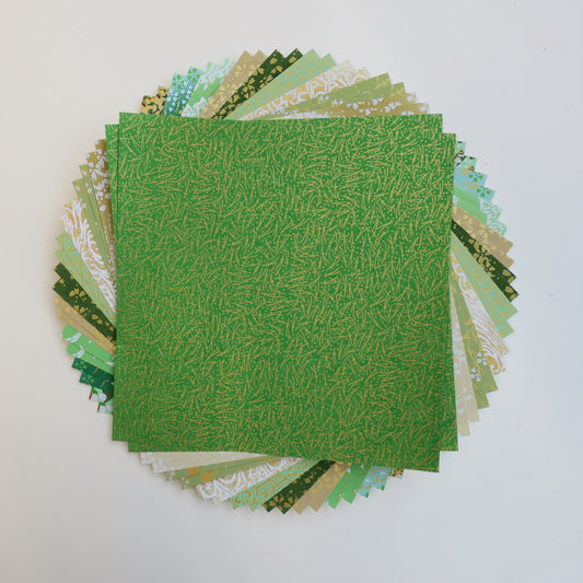 Paquete mixto de papel Washi Origami de colores temáticos verde y dorado de 20 hojas 14x14cm