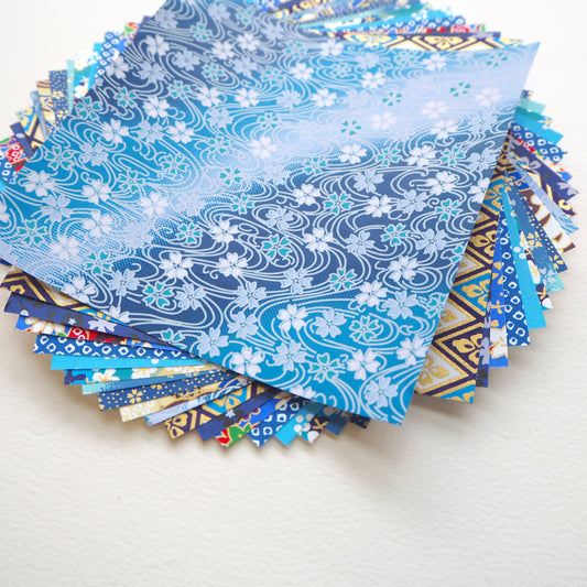 Paquete mixto de papel Washi Origami de 20 hojas de colores temáticos azules, 14x14cm