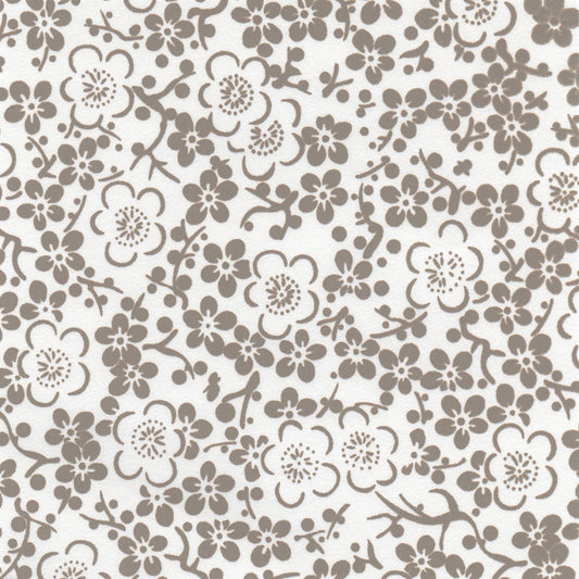 Paquete de 20 hojas de papel para origami Yuzen Washi de 14x14 cm HZ-390 - Flores de ciruelo lindas de dama blanca gris