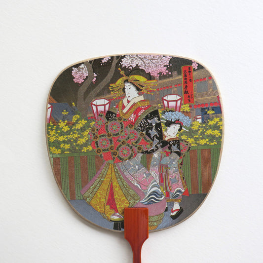 Carte de vœux pour fans d'Uchiwa - Mère et fille Ukiyo-e
