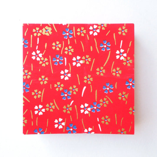 Paquet de 100 feuilles de papier origami Yuzen Washi 7x7 cm HZ-116 - Petite fleur de cerisier rouge