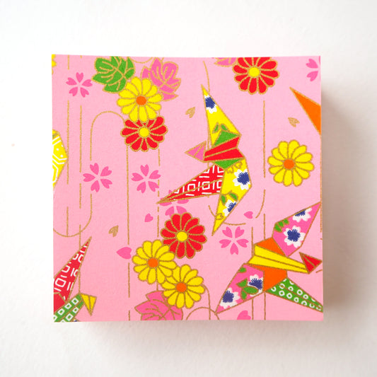 Paquet de 100 feuilles de papier origami Yuzen Washi 7x7 cm HZ-463 - Grues Origami Rose (S)