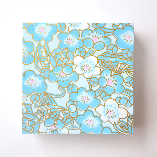 Paquet de 100 feuilles de papier origami Yuzen Washi 7x7 cm HZ-500 - Fleur de prunier nuageux bleu aqua