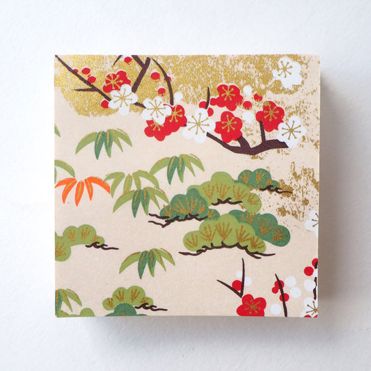 Paquet de 100 feuilles de papier origami Yuzen Washi 7x7 cm HZ-070 - Jardin de fleurs de prunier