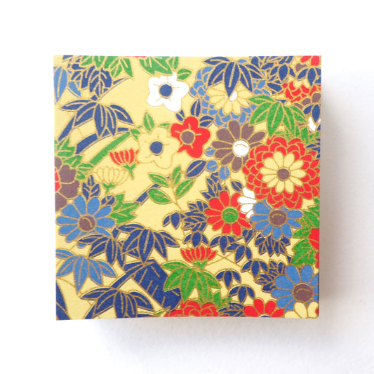 Paquet de 100 feuilles de papier origami Yuzen Washi 7x7 cm HZ-072 - Jardin de chrysanthèmes et de pivoines
