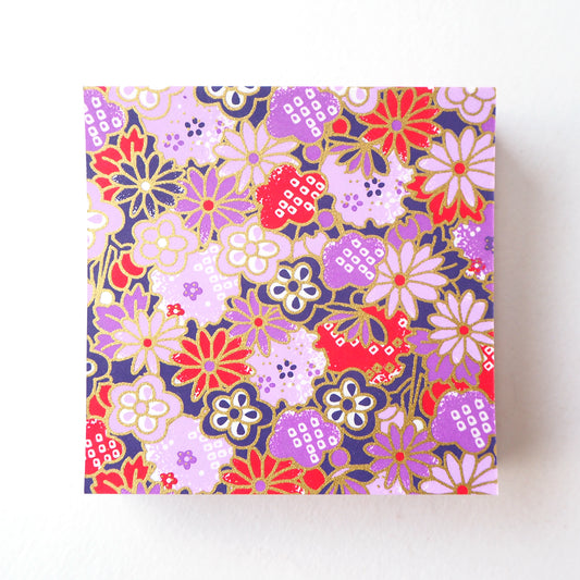 Paquet de 100 feuilles de papier origami Yuzen Washi 7x7 cm HZ-231 - Chrysanthèmes fleuris violets