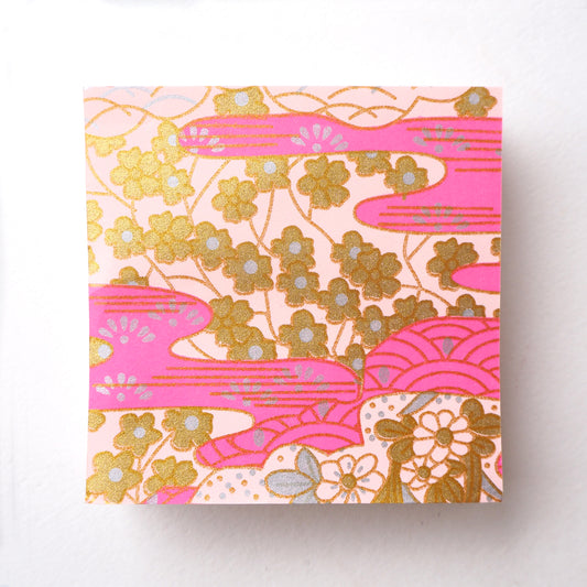 Paquet de 100 feuilles de papier origami Yuzen Washi 7x7 cm HZ-085-2 - Jardin d'eau qui coule rose