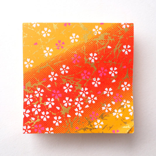 Paquet de 100 feuilles de papier origami Yuzen Washi 7x7 cm HZ-006 - Petit dégradé d'orange en fleurs de cerisier