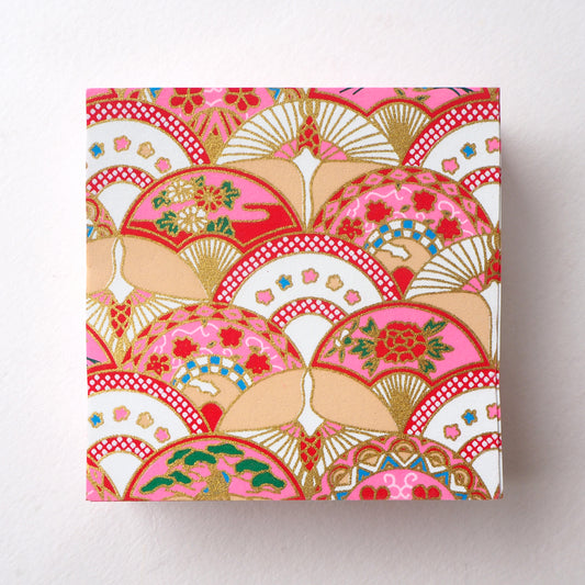 Paquet de 100 feuilles de papier origami Yuzen Washi 7x7 cm HZ-032 - Magnifiques éventails floraux et cercle de grues