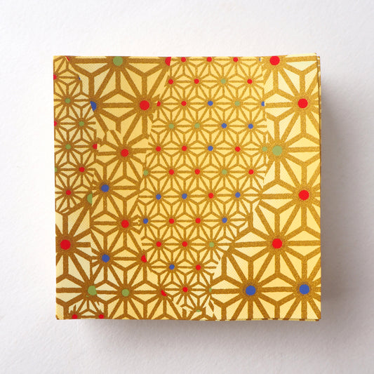 Paquet de 100 feuilles de papier origami Yuzen Washi 7x7 cm HZ-074 - Damier doré (L)