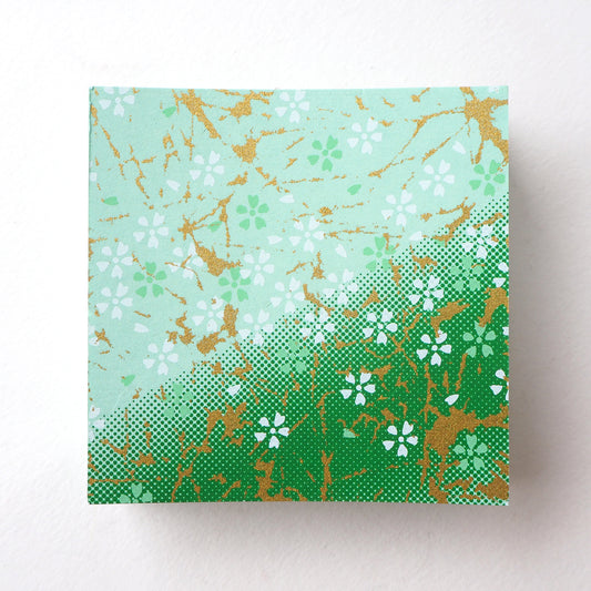 Paquet de 100 feuilles de papier origami Yuzen Washi 7x7 cm HZ-052 - Petit dégradé vert fleur de cerisier