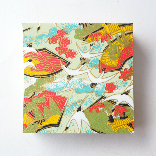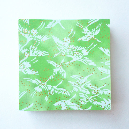 Paquet de 100 feuilles de papier origami Yuzen Washi 7x7 cm HZ-090 - Grues Vert Frais