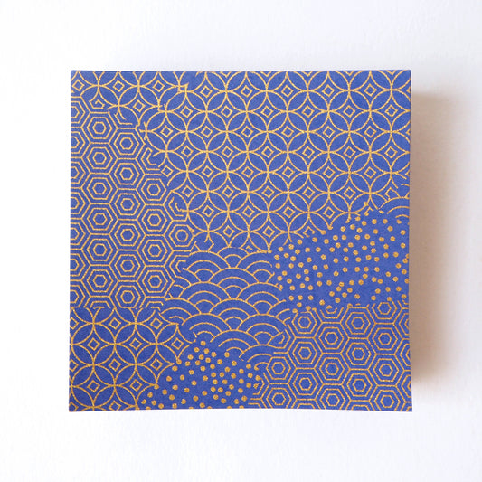 Paquet de 100 feuilles de papier origami Yuzen Washi 7x7 cm HZ-495 - Motifs géométriques mixtes bleu or