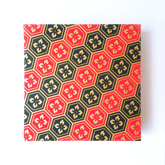 Paquet de 100 feuilles de papier origami Yuzen Washi 7x7 cm HZ-048 - Fleur de diamant écaille de tortue rayée noir et rouge
